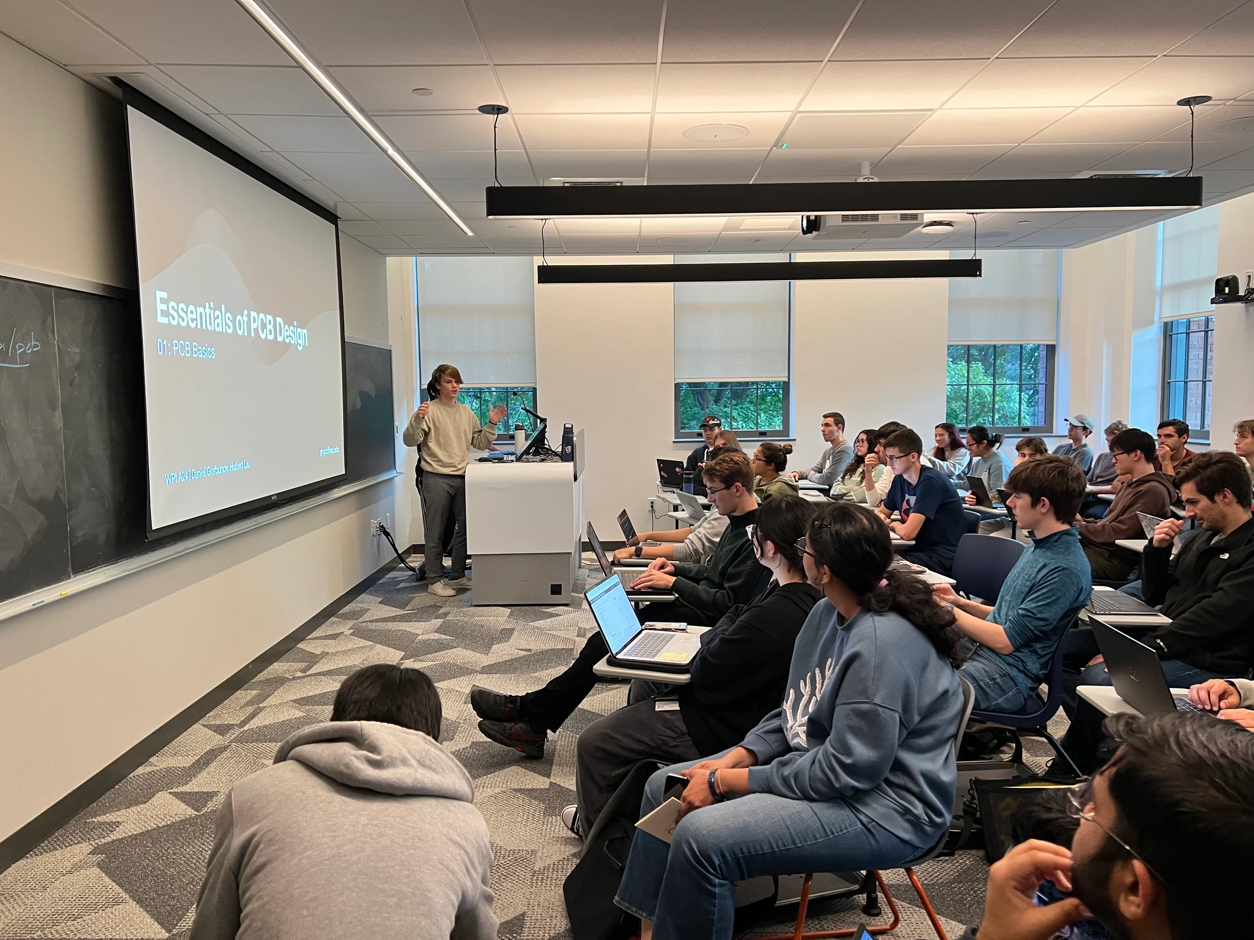 I designed and taught a comprehensive PCB design course for WPI students, which now runs annually. The course is run with the help of WPI's IEEE Student Branch. The course takes students from zero knowledge to designing and ordering their own printed circuit boards, covering both the theory and practical skills needed for modern electronics design. I first taught the course in D-Term of 2023, and have been teaching it ever since.